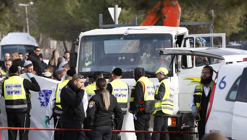 Tέσσερις Ισραηλινοί στρατιώτες σκοτώθηκαν σήμερα και δεκαεπτά τραυματίστηκαν όταν ένας Παλαιστίνιος, ο οποίος παρουσιάζεται από το Ισραήλ ως υποστηρικτής της οργάνωσης Ισλαμικό Κράτος έπεσε με το φορτηγό του πάνω τους, κατά τη διάρκεια μιας περιήγησης στην Ιερουσαλήμ.