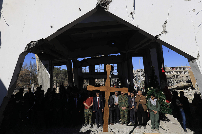 Οι περισσότεροι κάτοικοι της Ράκκα παραμένουν εκτοπισμένοι, αλλά το Ασσύριο/Συριακό Στρατιωτικό Συμβούλιο και άλλα στοιχεία της SDF προετοίμασαν μια χριστουγεννιάτικη γιορτή στην κατεστραμμένη Αρμενική Καθολική Εκκλησία των Μαρτύρων στην ανατολική Ρακκα.