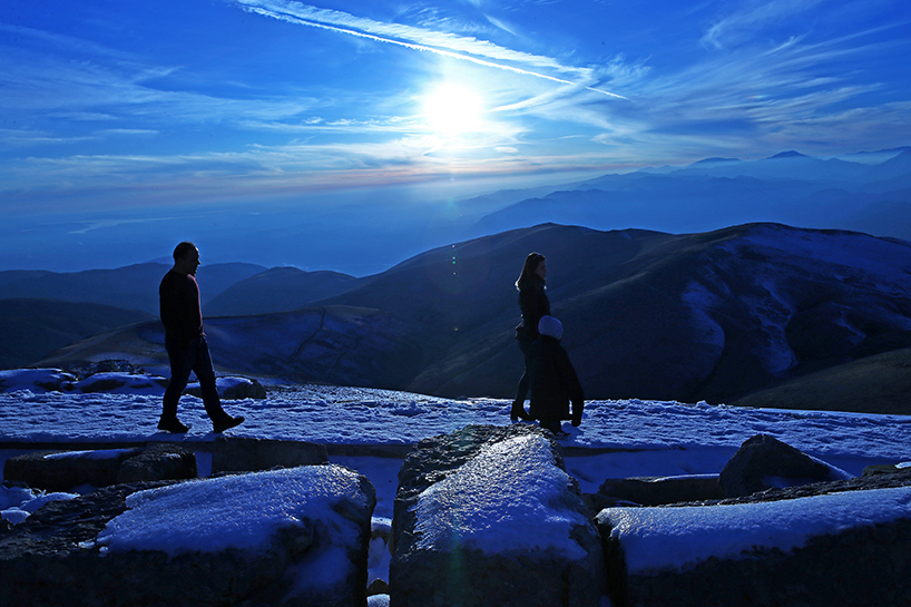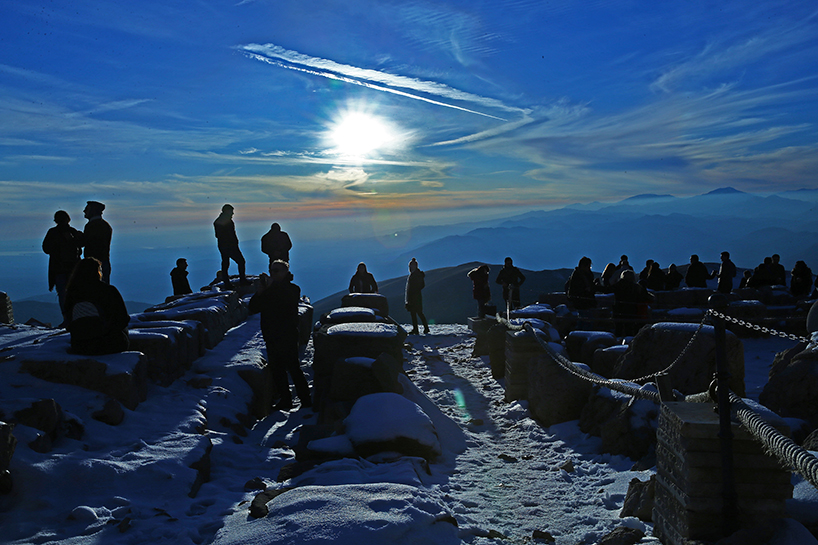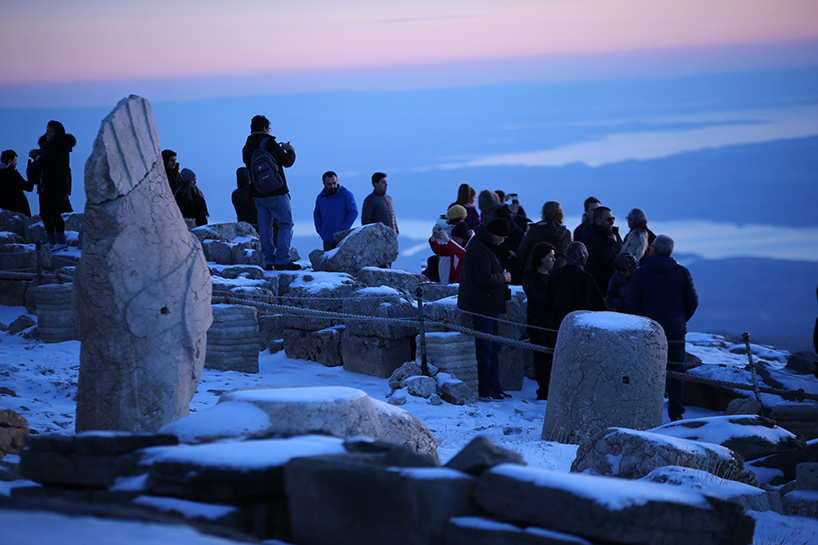 Χιόνι έχει καλύψει τα αρχαία αγάλματα στο Όρος Nemrut στην νοτιοανατολική επαρχία Adiyaman της Τουρκίας.