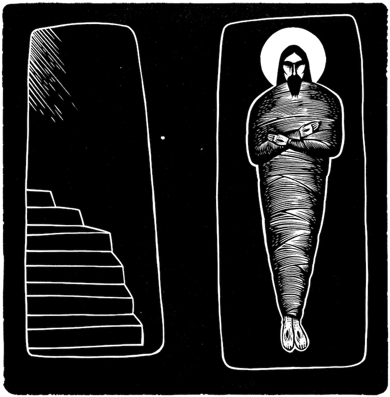 Και τώρα...σιωπή. Ο Χριστός βρίσκεται στον τάφο. Οι μαθητές Του είναι διασκορπισμένοι και φοβισμένοι. Οι γυναίκες που Τον ακολούθησαν ως τη Σταύρωση είναι βαθιά λυπημένες.